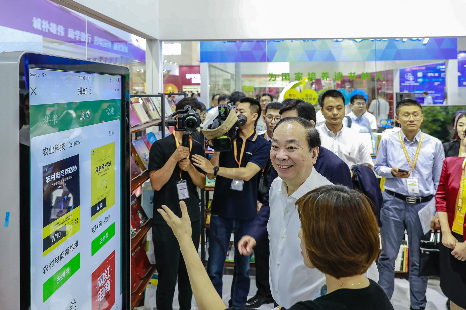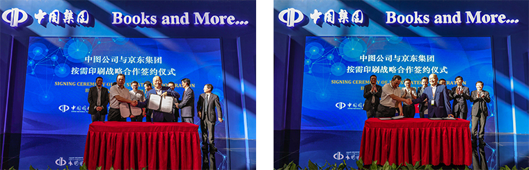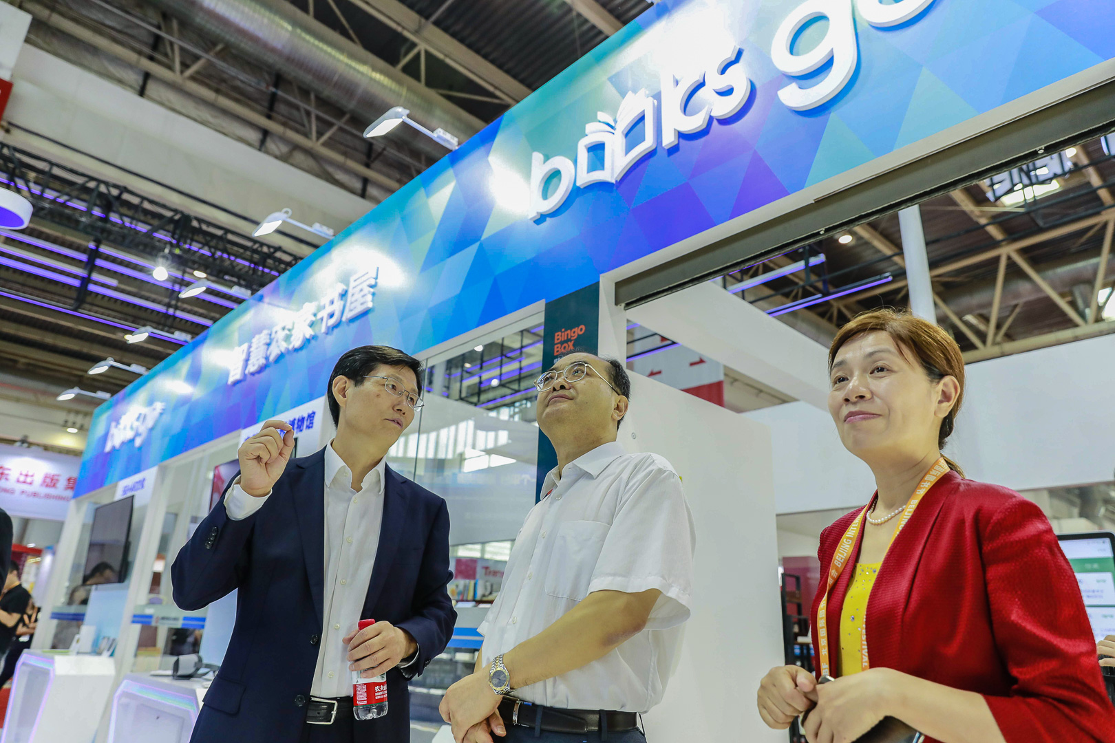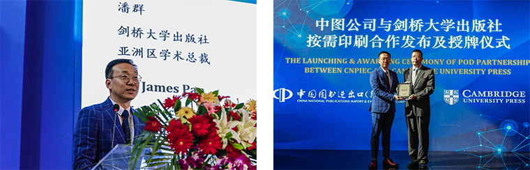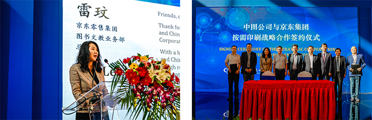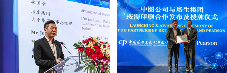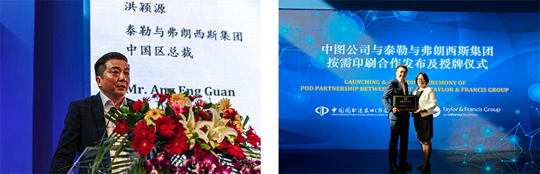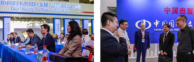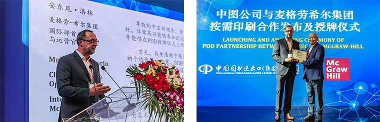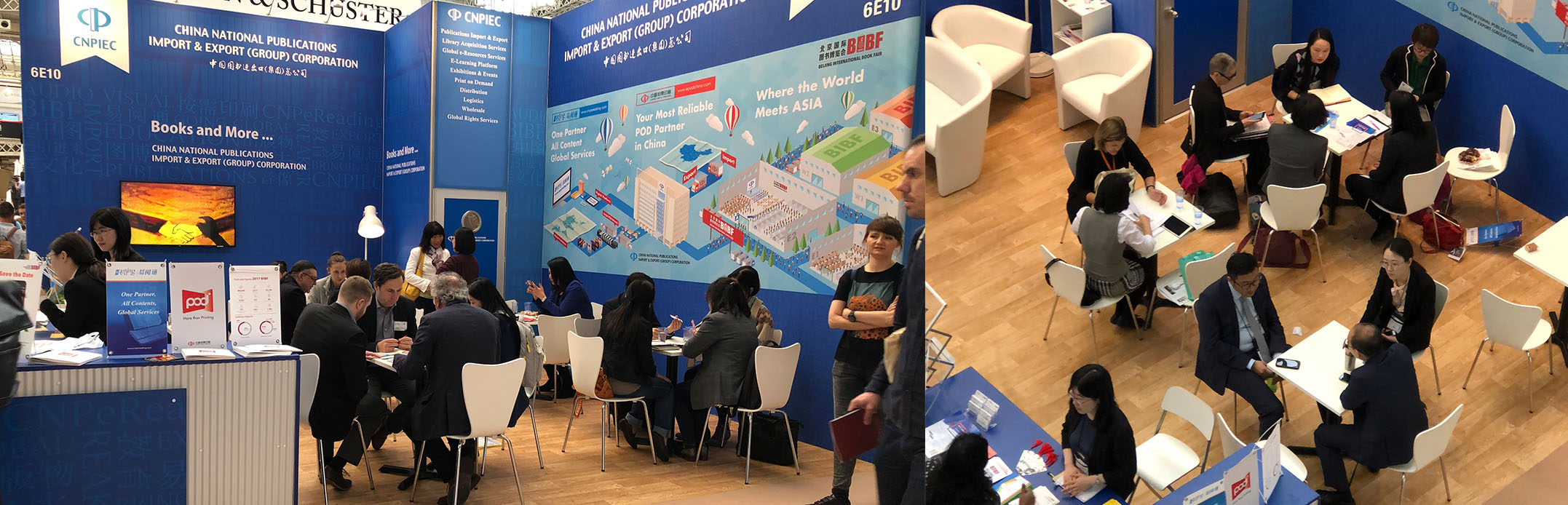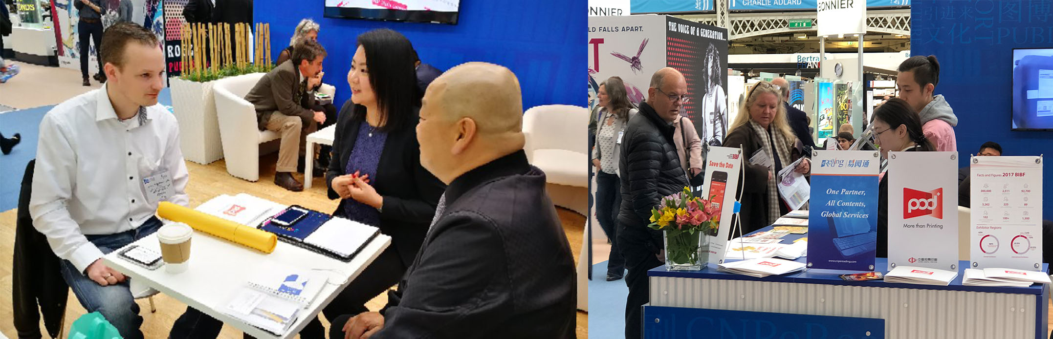 工作人员向阿拉伯展商介绍中图按需印刷产品